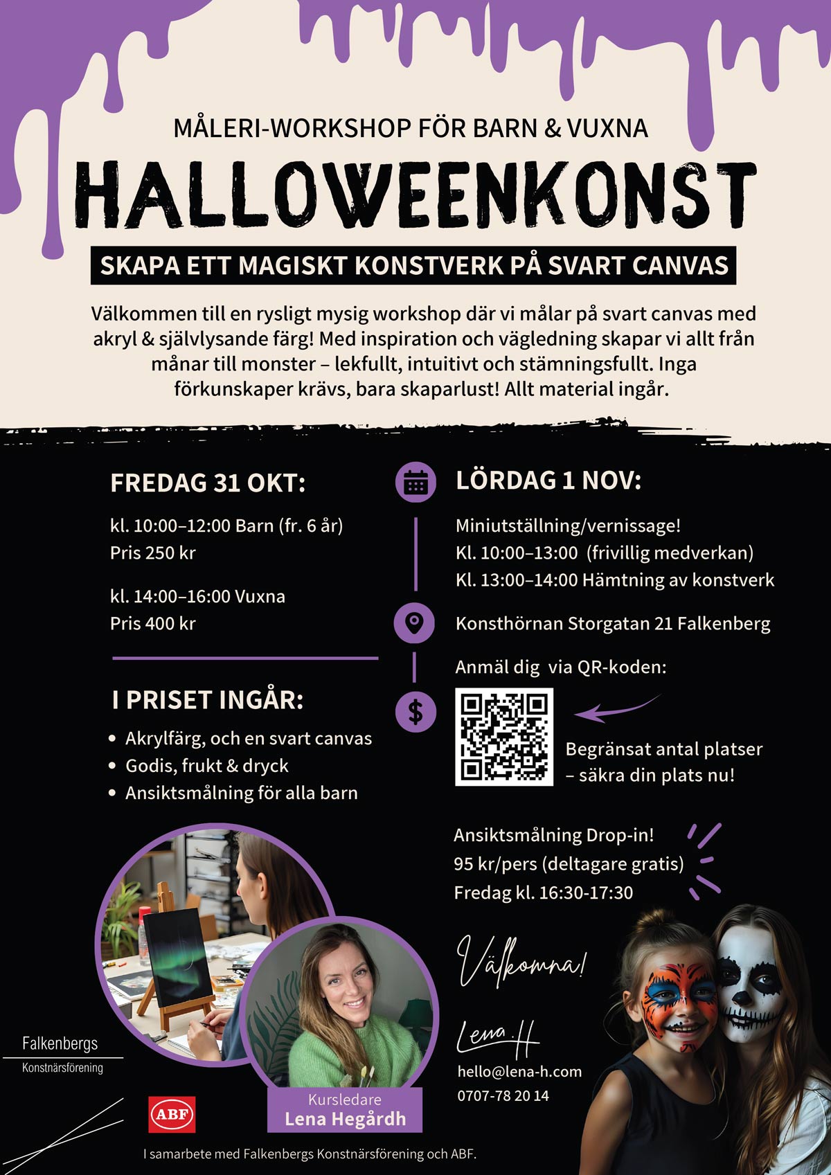 Välkommen till en rysligt mysig workshop där vi målar på svart canvas med akryl & självlysande färg!